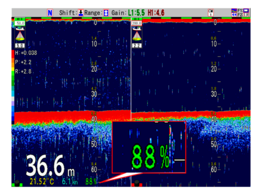 This innovative sounder is equipped with the capability of selecting four frequencies within the range of broadband transducer. This feature provides its user with the possibility of fine tuning for spotting desired types of fish, improved search of water depth. Flexible selection of frequencies by 0.1kHz step enables the user to stay away from interference with the sounders on the other vessels.
